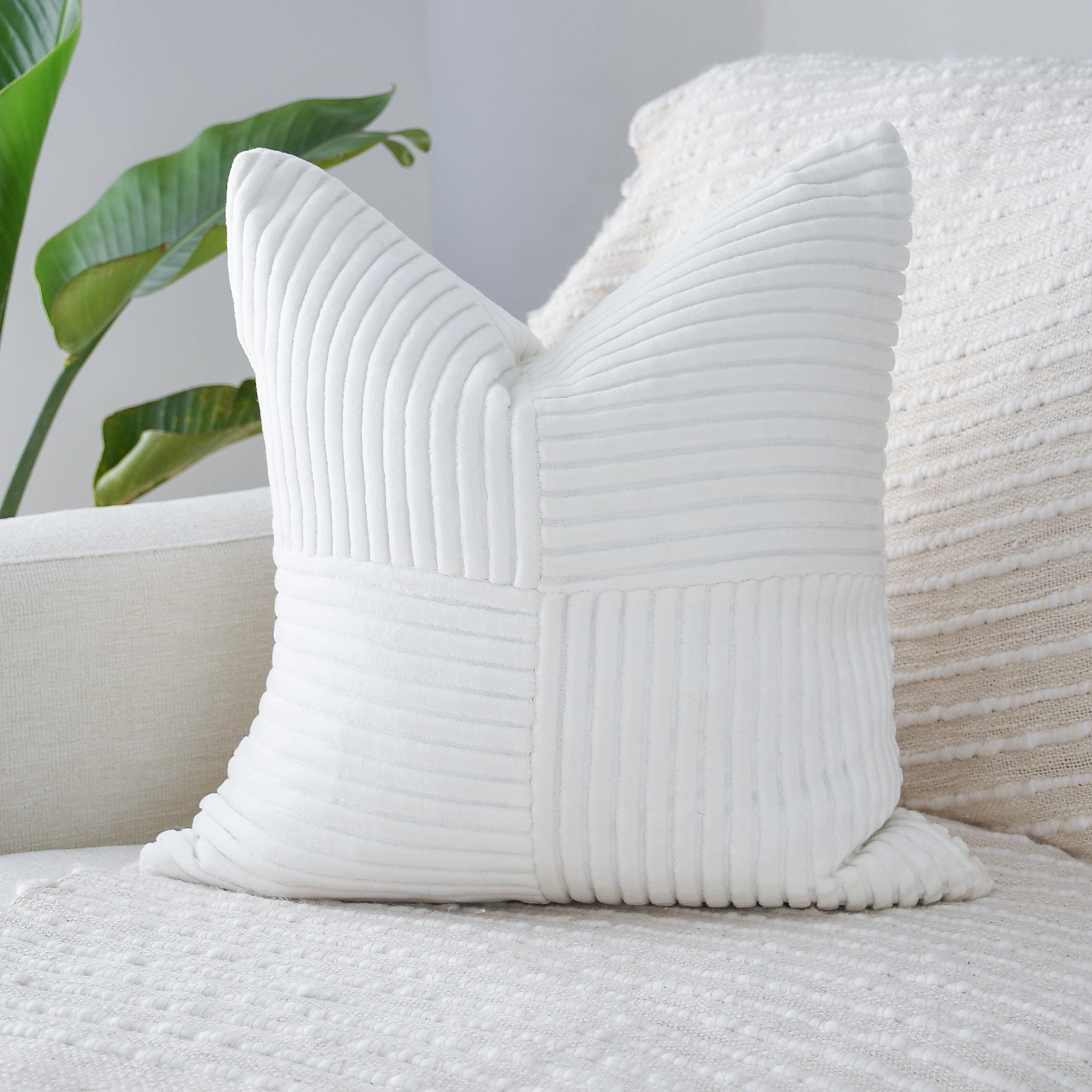 - 18x18" Ivory Velvet Corduroy Double Sided with Geometric Square pattern