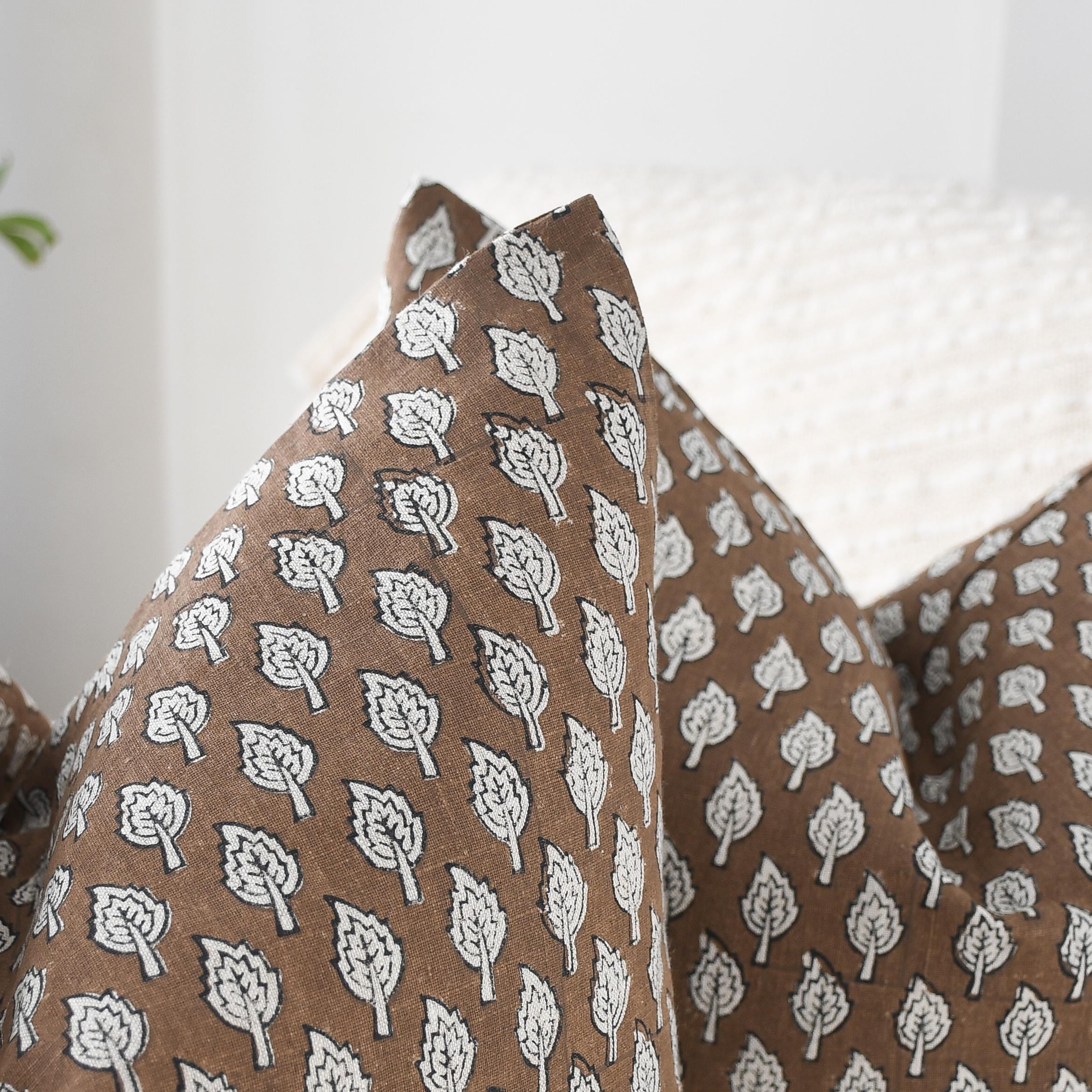 Brown Leaf Block Print Pillow Cover