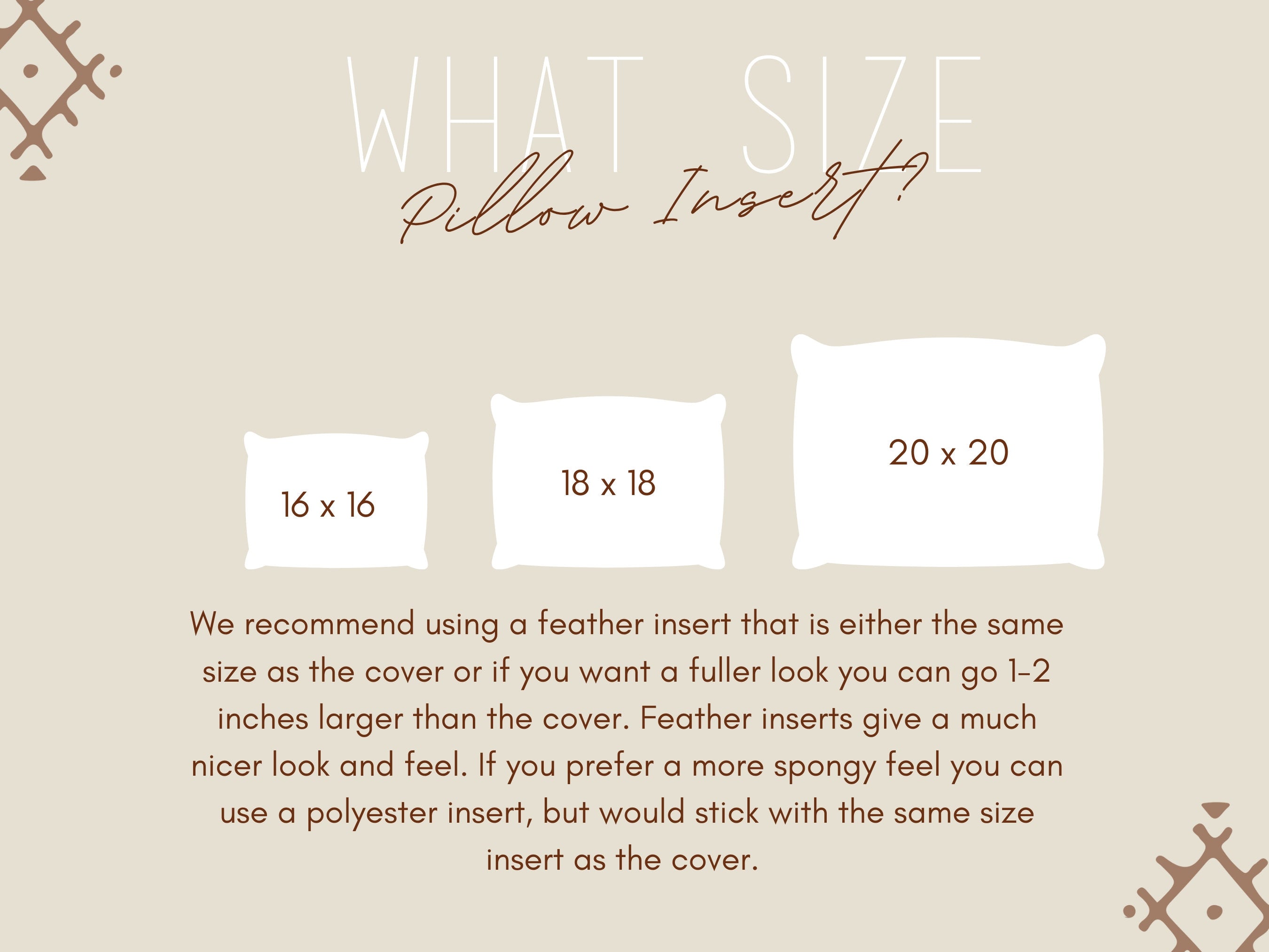 We recommend using a feather insert that is either the same size as the cover or if you want a fuller look you can go 1-2 inches larger than the cover. Feather inserts give a much nicer look and feel. If you prefer a more spongy feel you can use a polyester insert, but would stick with the same size insert as the cover. Hope that helps.
