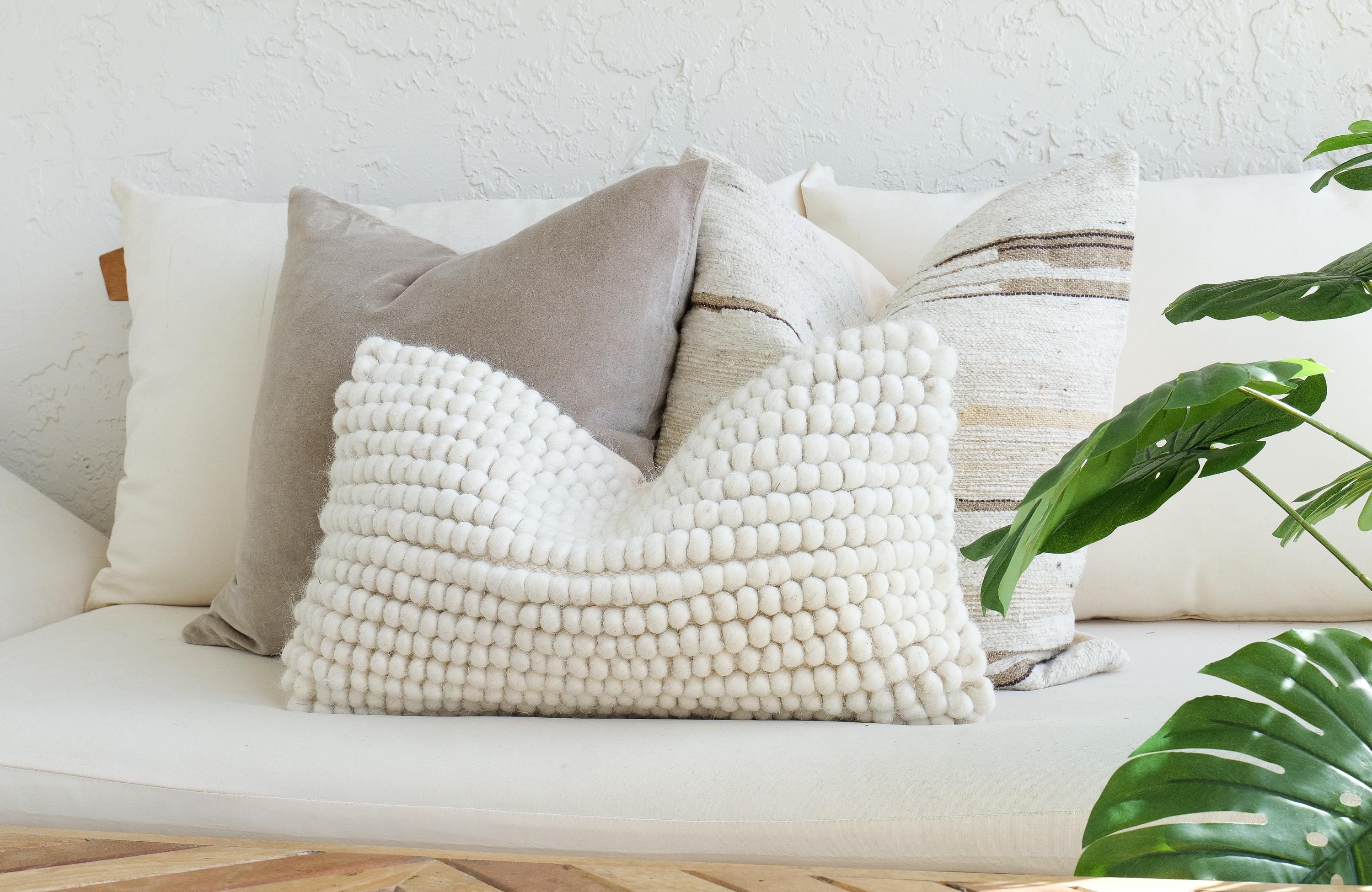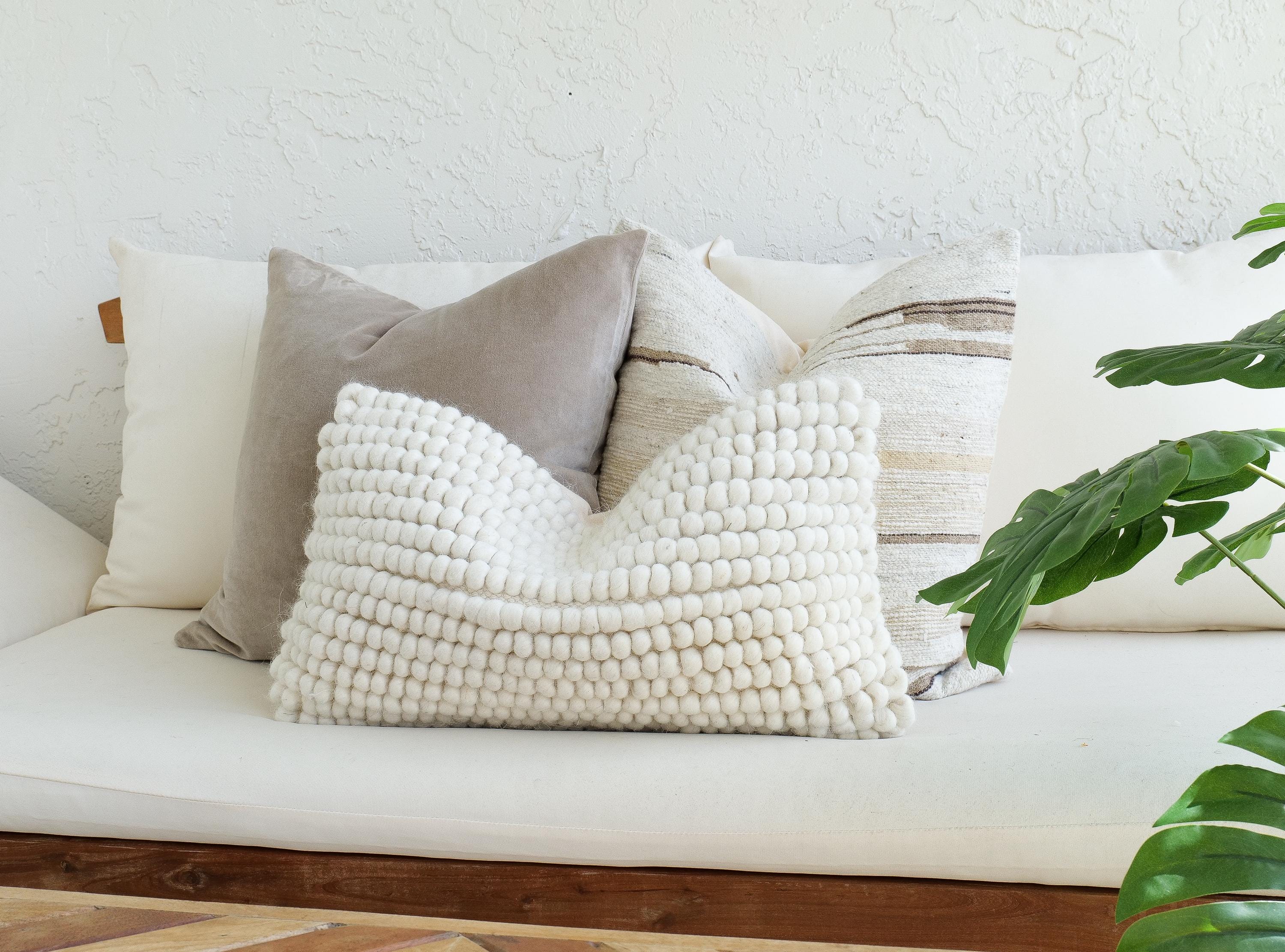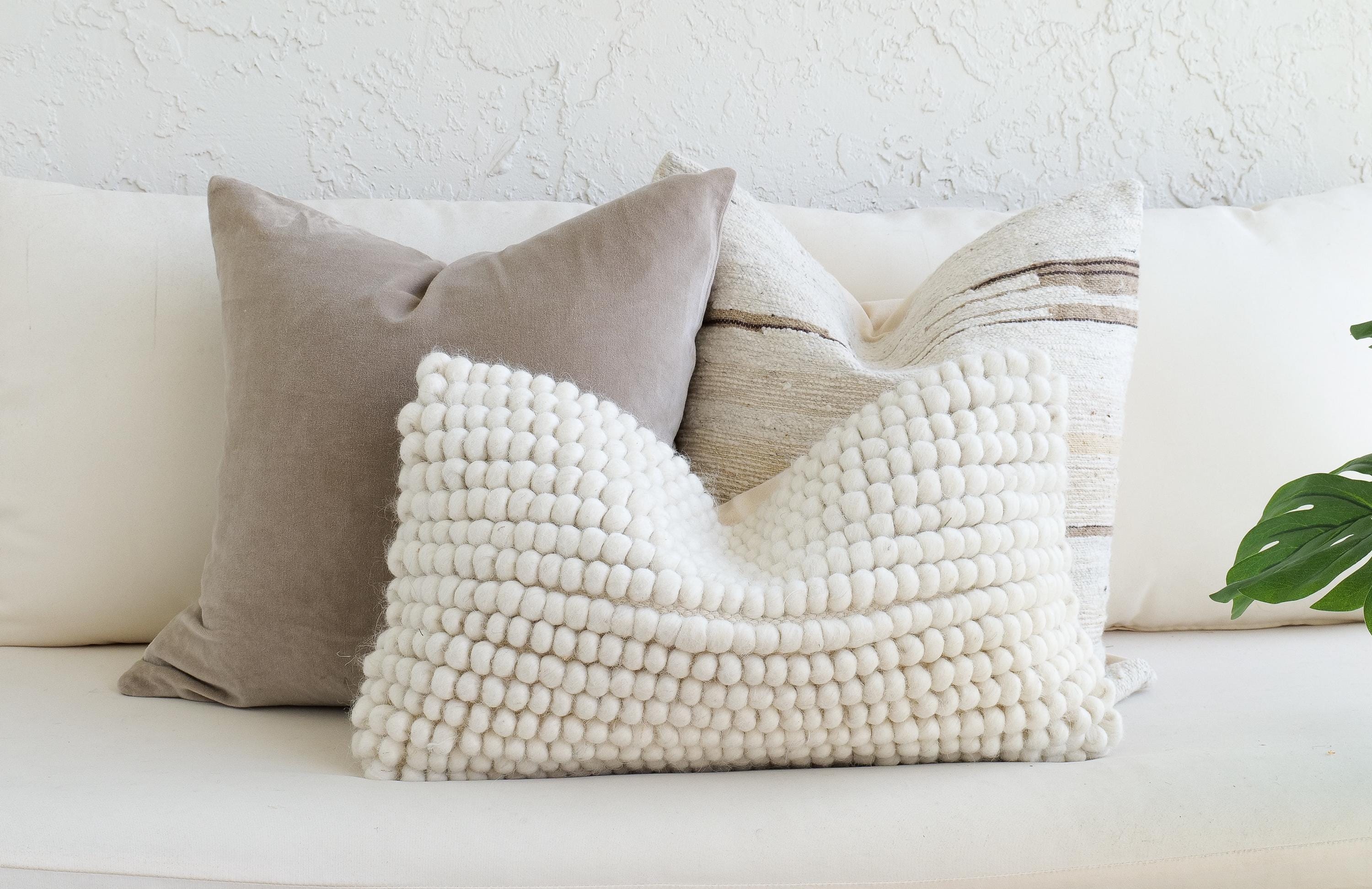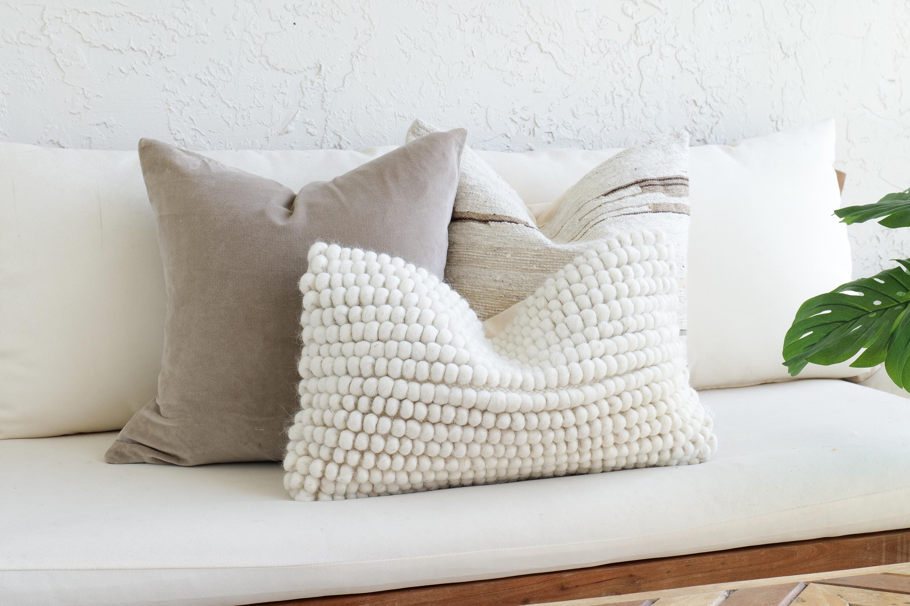 Styled together, this trio works beautifully in living rooms, bedrooms, entryway benches, or reading nooks. The combination of velvet smoothness, wool texture, and soft neutral tones creates a restful, elevated look that complements modern, organic, Scandinavian, and cozy minimal interiors. (Pillow Insert NOT included)