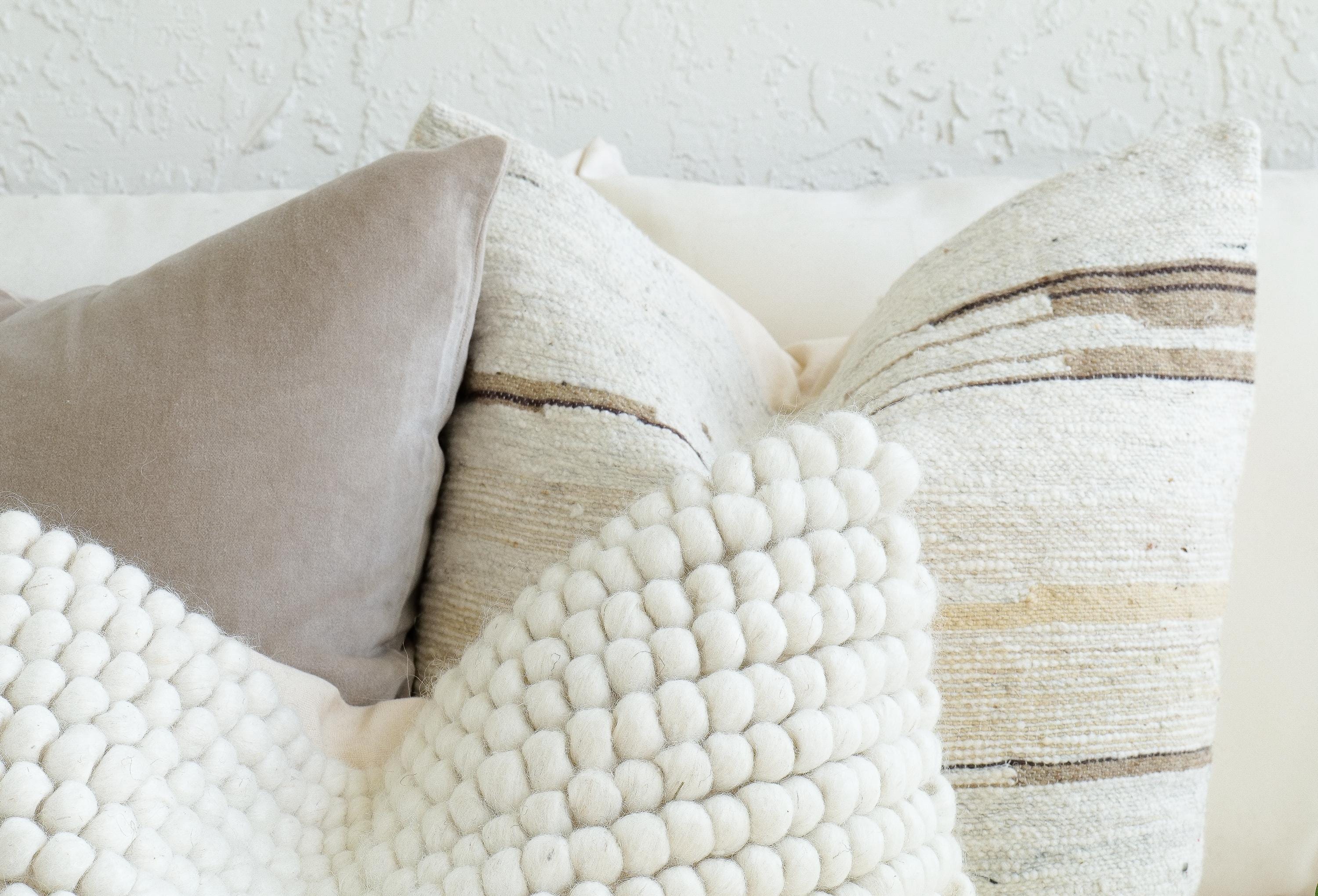 Neutral Wool & Velvet Pillow Set