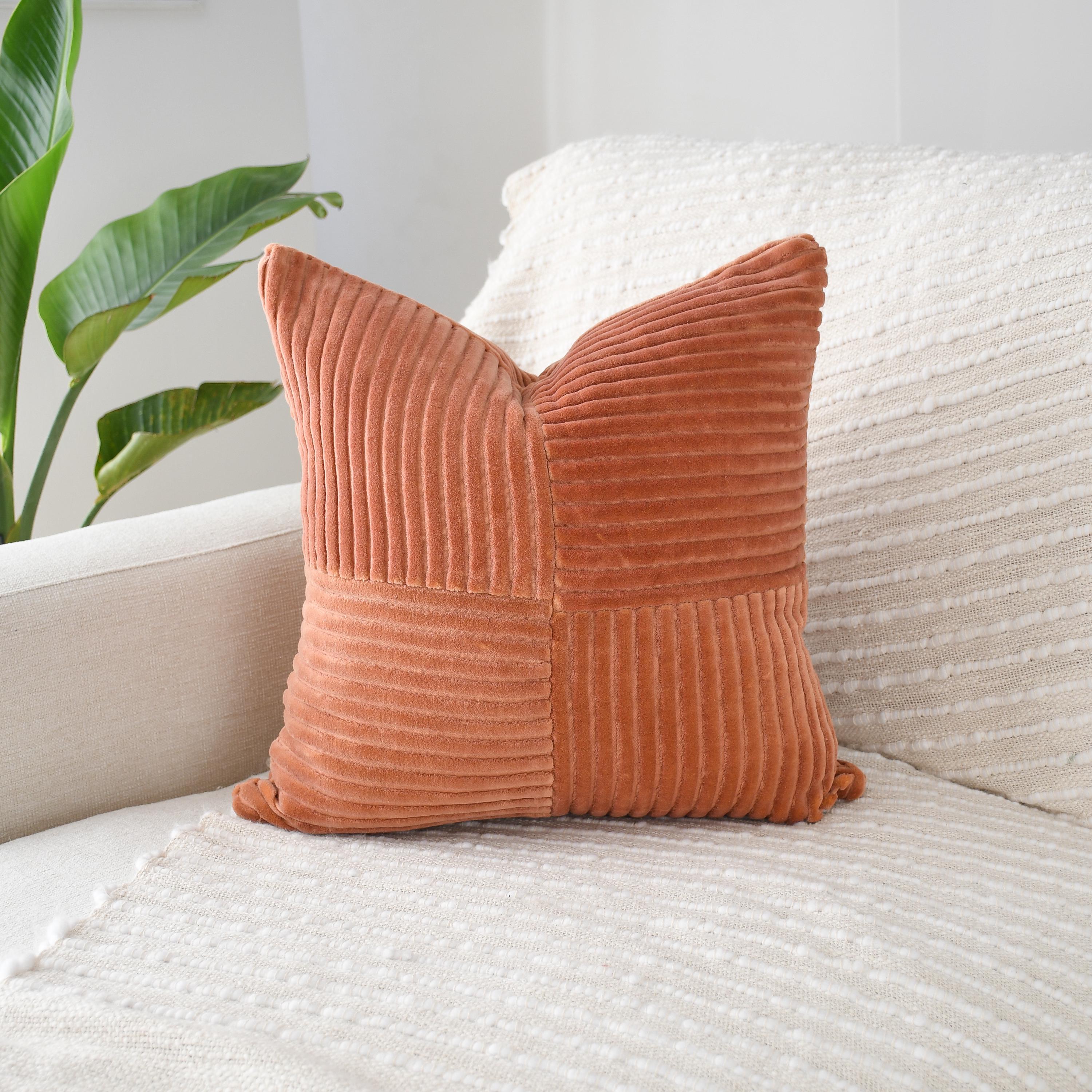 - 18x18" Peach Corduroy- Geometric Square Double Sided Cushion
